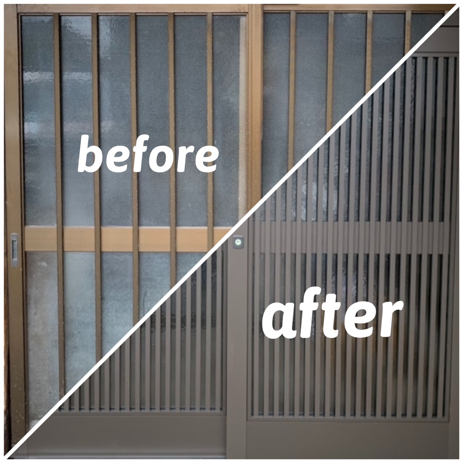 こんにちは(#^.^#)浅井です! 今回は重い重い玄関引戸でお悩みだった「S様」 玄関を1日で取替えられる【玄関引戸リシェント】でお悩み解決です◎ 「S様」この度は数あるお店から当店に工事をお任せ下さり 本当にありがとうございます。 開閉がスムーズにいかない。。ということで 工事をさせて頂きました業務の酒見が実際にあけてみると 力いっぱいに引かないと開かない状態だったそうです。 玄関は毎日使う場所なので、そんなに開け閉めに力がいるのは きっと本当に大変だったことと思います。 今回は当店でも人気の1DAYリフォーム「玄関リシェント」で たった1日でお悩み解決です!!