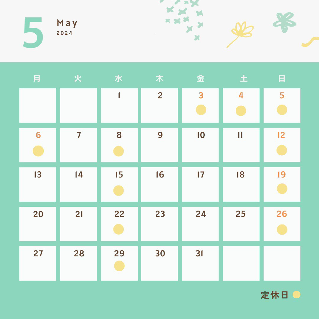 - 5月の営業スケジュールをアップします🍃