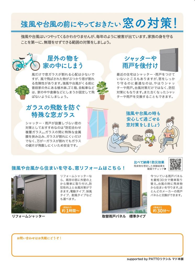 強風や台風の時でも安心して過ごせる窓対策をしませんか?