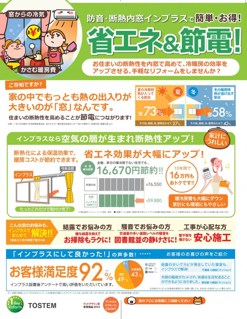 インプラス(二重窓)の節電効果ってどのくらいあるの?、、、続きはクリック?