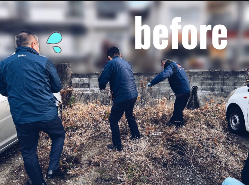 こちらは駐車場草むしりチームです(笑)ながーいつるをみんなで力を合わせて引っ張っています!