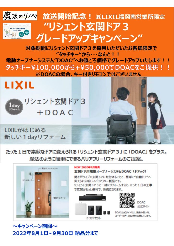 「魔法のリノベ」放送開始記念📺リシェント玄関ドアキャンペーン(LIXIL福岡南営業所限定)始まりました!