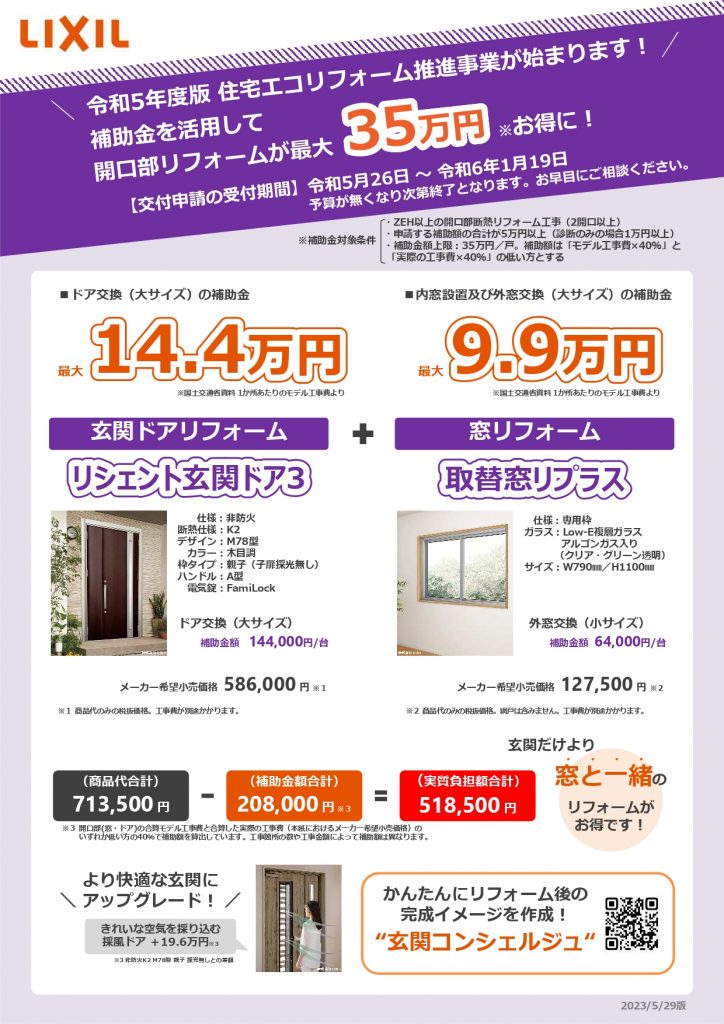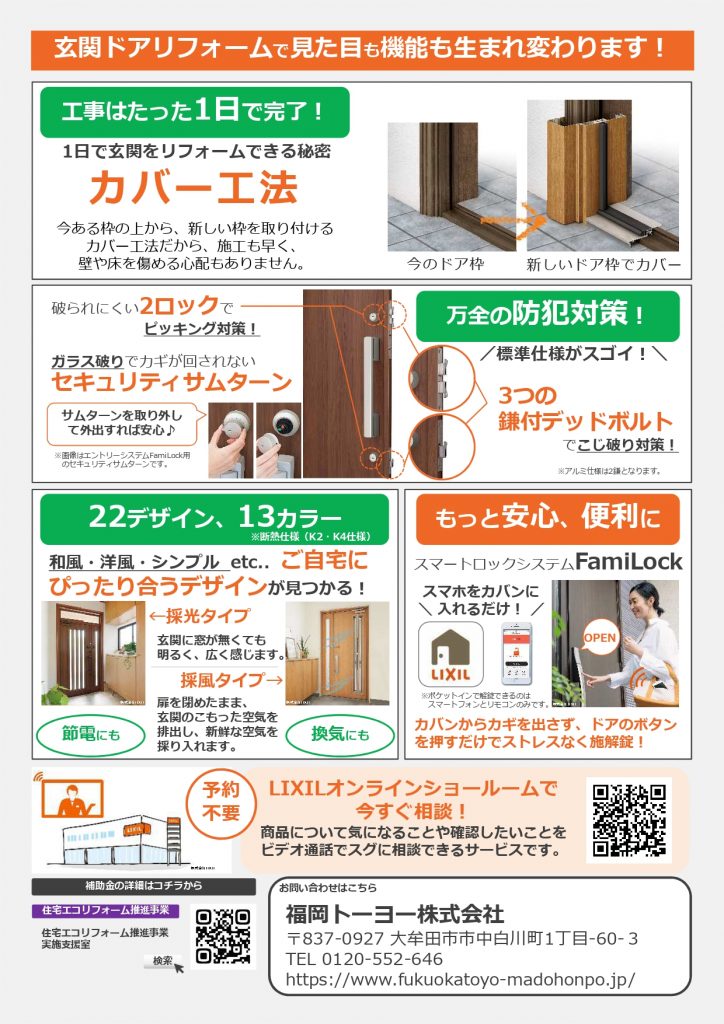 令和5年度版住宅エコリフォーム推進事業が始まりましたよ~玄関取替をご検討の方!今がチャンスです✨