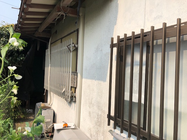 手前の白いモルタル壁に新しく戸袋が来るためダクトを移動して