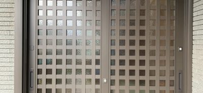 違う部分、わかりますか? 既存の枠の内側にもう一つ枠を入れて中折れドアが入ってます。