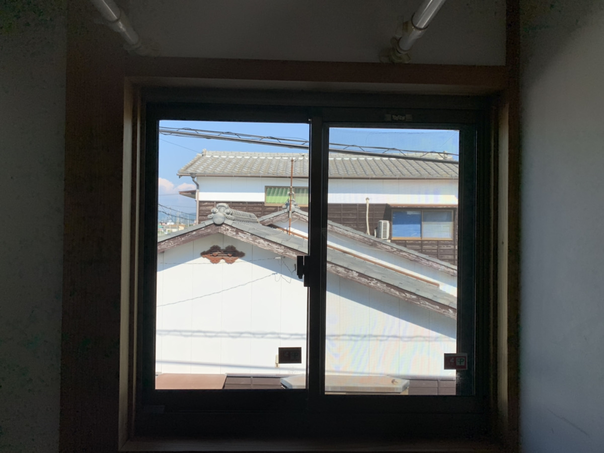 施工前は、通常の透明ガラスのため、台風時飛来物などの危険がありました。