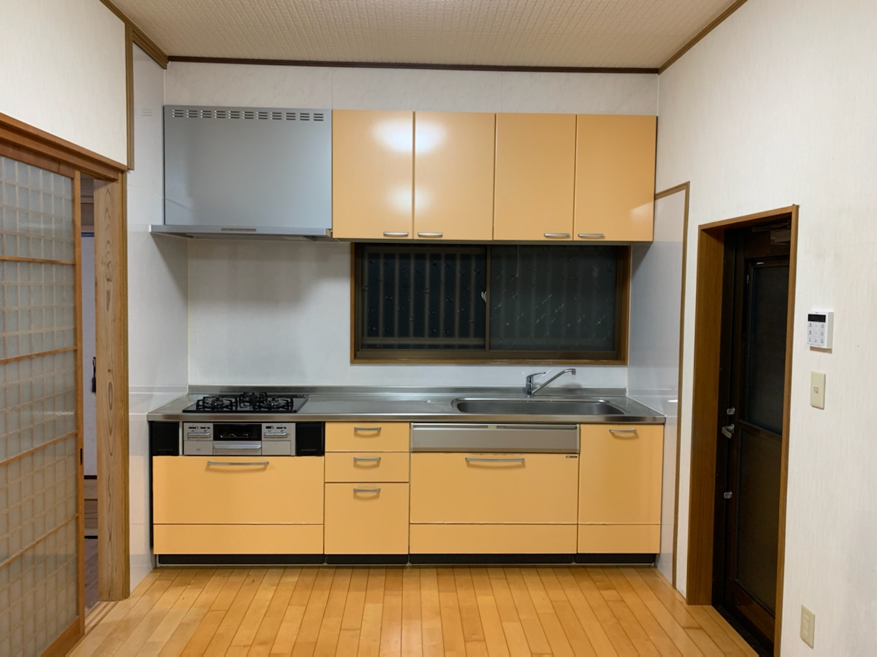 レンジフードと吊戸が高い位置にある為、20センチ下げてお掃除が楽なよごれんフードのご採用。 勝手口と台所のマドは、真空ガラスのスペーシアで断熱遮熱。その他のマドや掃き出しサッシには全て断熱内窓インプラスで断熱遮音遮熱。角部屋にエアコンを設置と既存バスルームに追い炊き機能付き給湯器へ変更して快適に