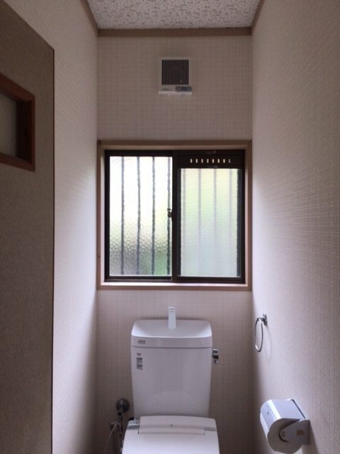 便器便座取替えと、床板張替え、そしてクロス(壁紙)張替えで清潔に ‼