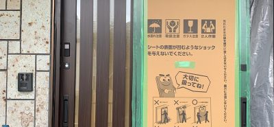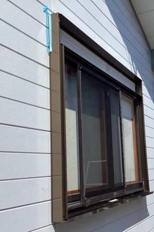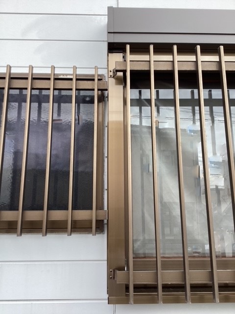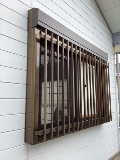 台風対策の為、窓にシャッターを後付け、そして、元の格子も再取り付け。