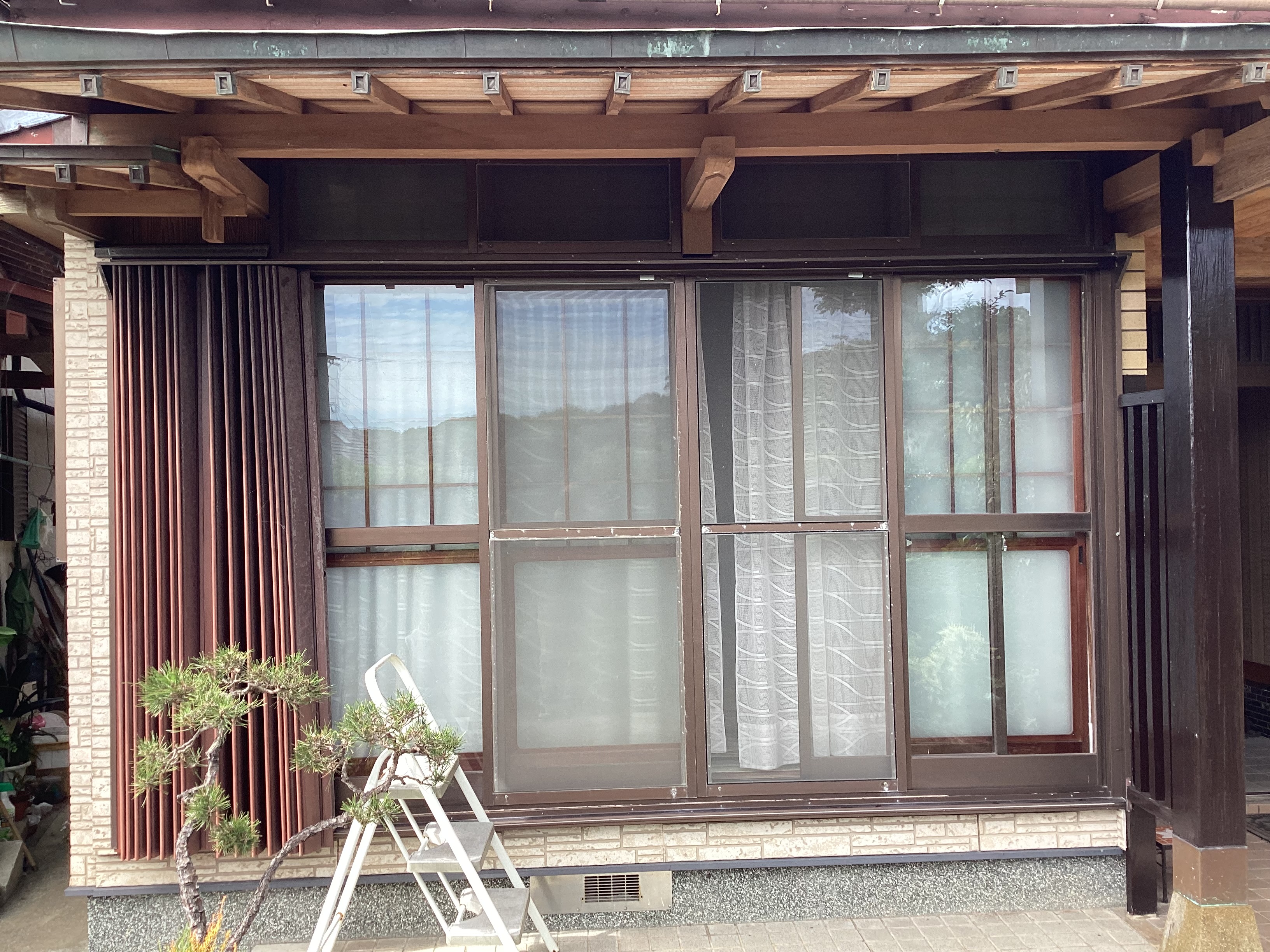 昔のアコーディオンタイプの雨戸だったから