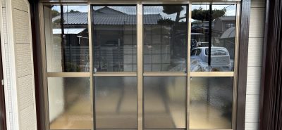 広縁のランマ部が木製建具なので、アルミサッシに替えて、外の風を取り入れる為に、網戸付にしたい。