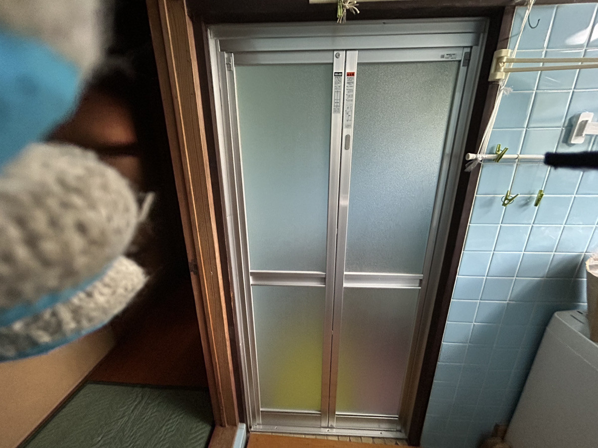 「浴室引き戸が動きづらく出入りがとても大変最近は少し開けた状態でお風呂に入っていました。」「開閉が楽なドアに交換してほしい」とのご要望