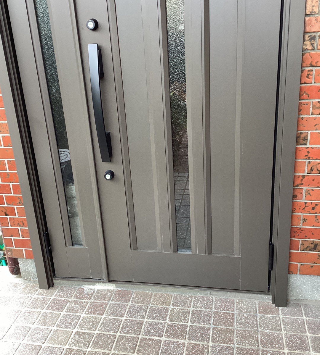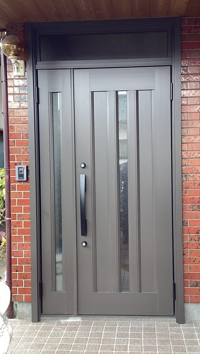 木製の玄関ドアをアルミの玄関ドアに取替。 雰囲気が明るくなりました。