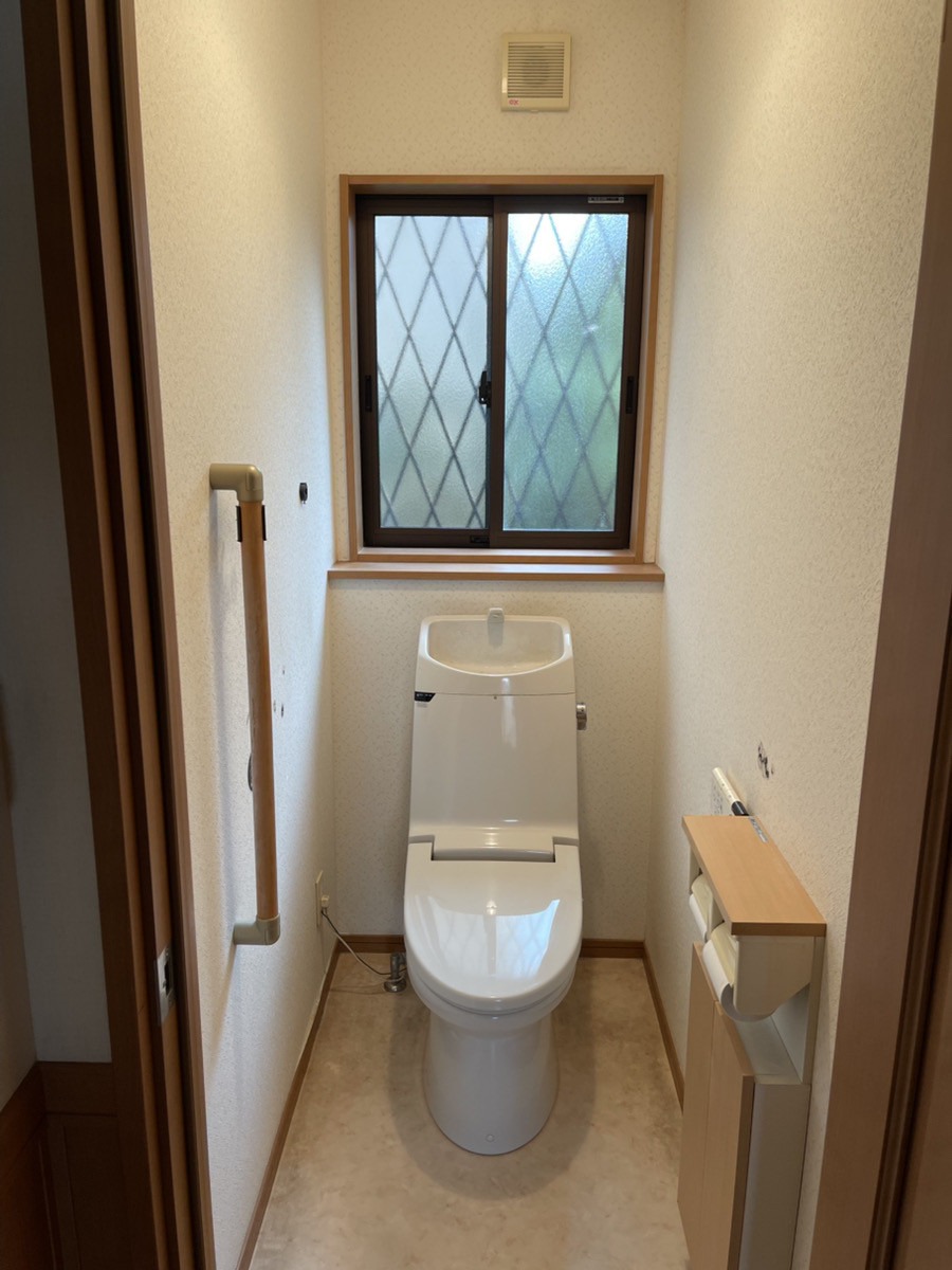 1階と2階にタンク1体型のトイレが付いていましたが、2階のトイレの故障に伴い、1階と2階のトイレを同時に取替工事をさせて頂くこととなりました。