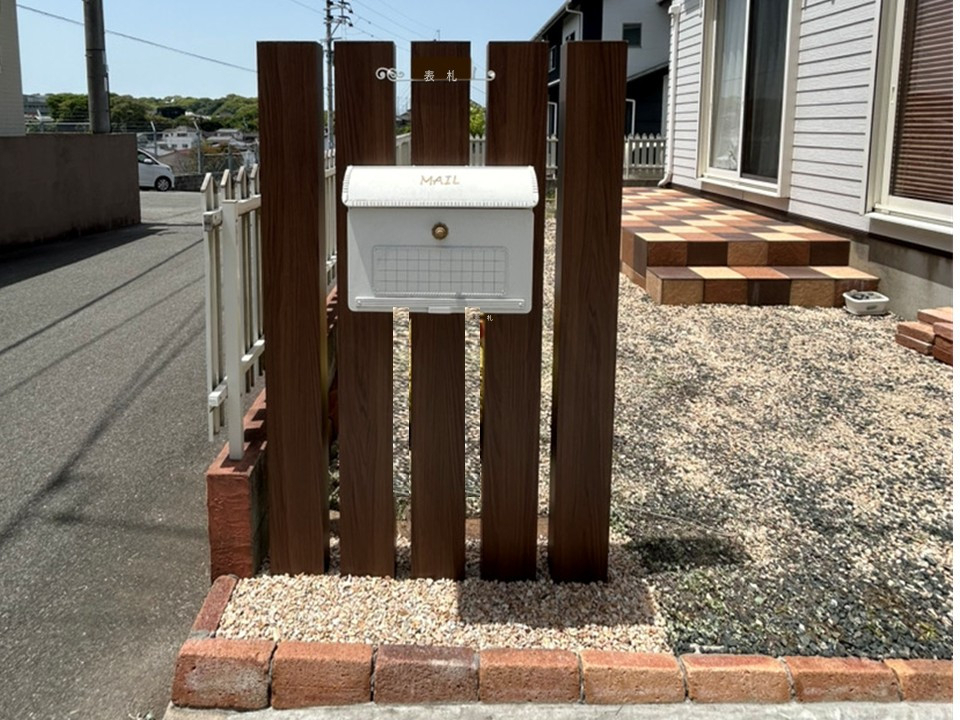 新築後約10年が経過し、門柱に使用していた枕木材の根本が腐食してしまって倒れそうなので、腐らない材質でお洒落な門柱を考えてもらえませんか?