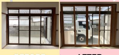 寒さ対策で、当初勝手口ドアと南側の窓のリフォームをご検討されていましたが、部屋ごと断熱した方が効果が高いのでリビングの部屋の窓と勝手口ドア、北側のトイレと脱衣室の窓のリフォームをしました。